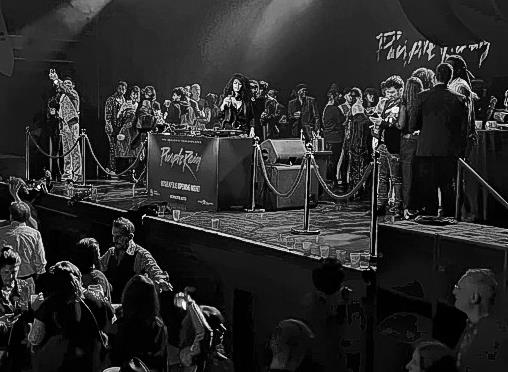 Attendees gathered around purple-tableclothed cocktail tables. Servers walked around with trays of toasted steak crostini and caprese skewers. Free copies of Andrea Swensson’s book “Prince and Purple Rain: 40 Years” were handed out at the door. The Prince star on the wall outside the venue was transformed into an official selfie station with lights and a purple carpet .